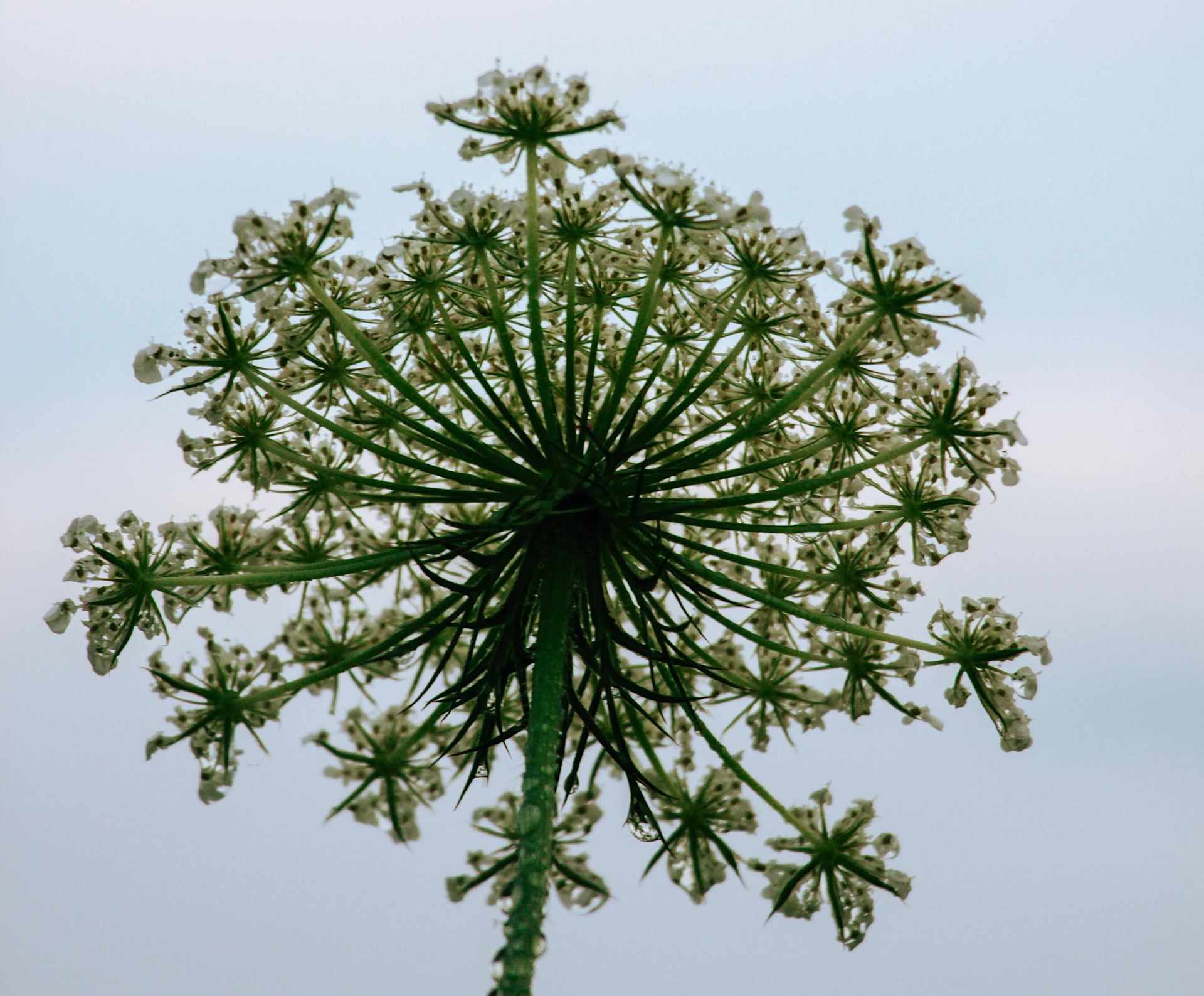 Identifying giant hogweed is crucial for safety. It can grow up to 14 feet tall with leaves around 5.5 feet in diameter and large clusters of white flowers. If you come across this plant, avoid contact with its clear, watery sap. Exposure, especially followed by sunlight, can cause phytophotodermatitis—a painful skin reaction characterized by severe blistering and potential scarring.