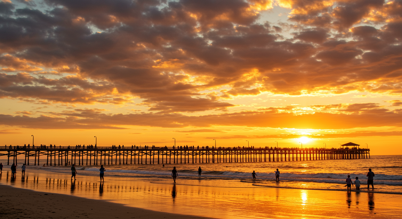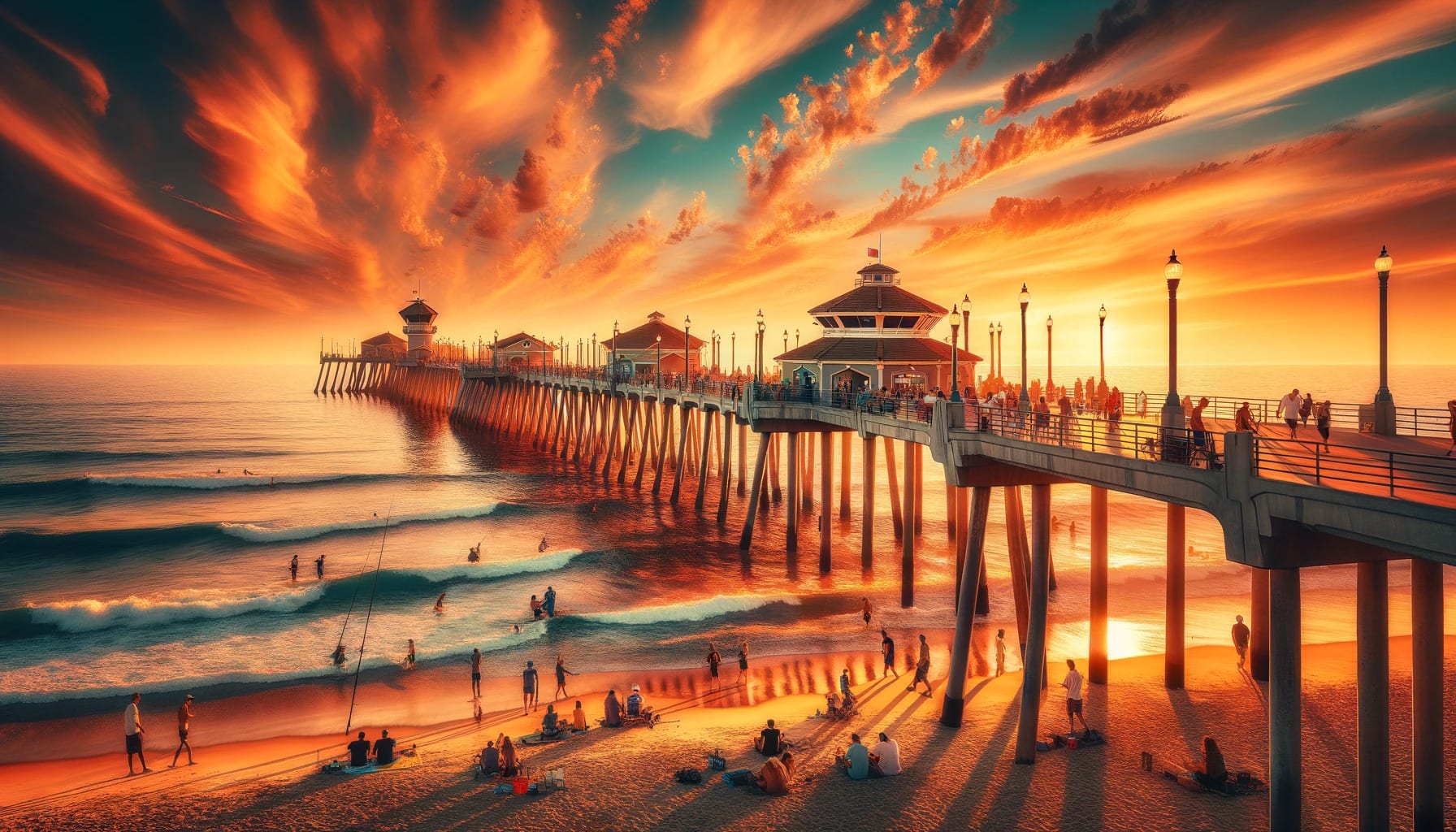 A symbol of California's surf culture, the Huntington Beach Pier extends into the Pacific, offering spectacular views and a glimpse into the surfing lifestyle. The pier is a popular spot for fishing, watching surfers, and enjoying sunsets.