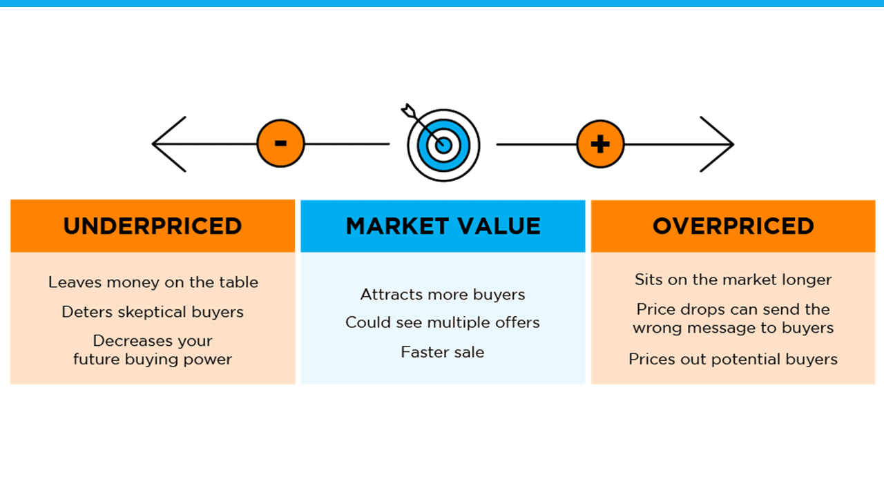For an overview of the potential drawbacks of over or underpricing your house and the advantages of pricing it at market value, refer to the chart provided below: