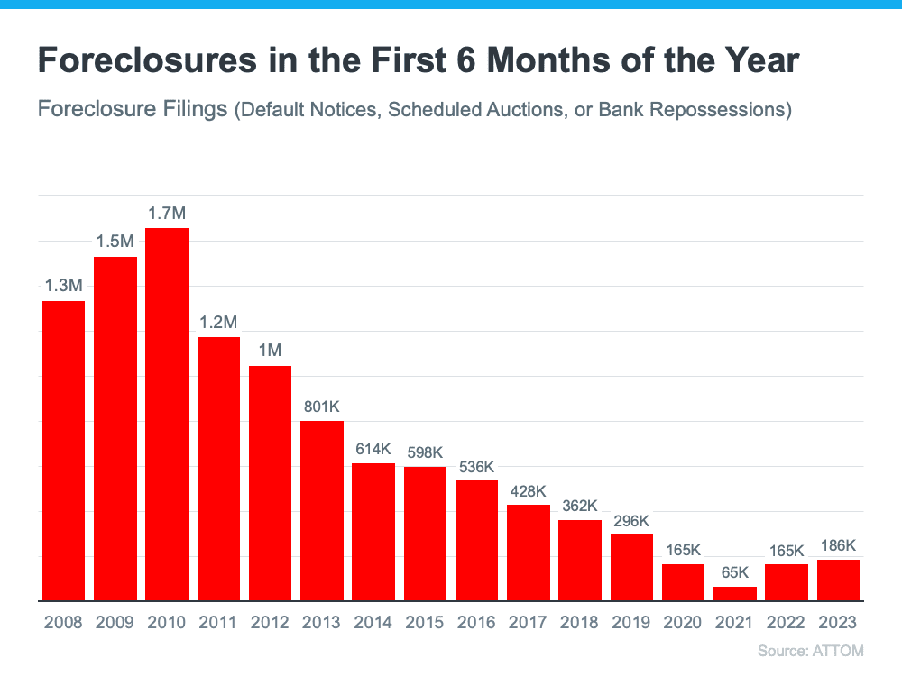 According to a recent report from ATTOM, foreclosure filings have gone up by 2% compared to the previous quarter and 8% compared to last year. While media attention is drawing focus on this increase, reporting solely on the numbers might generate unnecessary worry about a potential market crash. In reality, while foreclosures are on the rise, it does not indicate a foreclosure crisis like what occurred in the past.