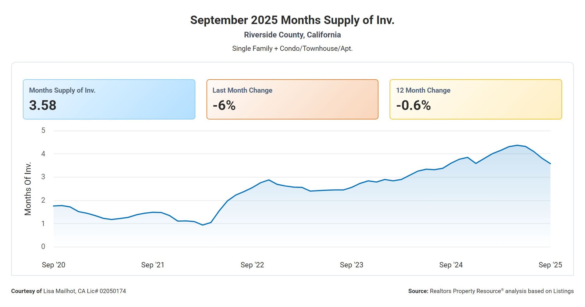 Riverside County continues to offer a more balanced real estate environment, with a 3.58-month supply of inventory. While supply has dipped slightly by 6% month-over-month and 1% year-over-year, the overall market remains steady and accessible to both first-time and move-up buyers.