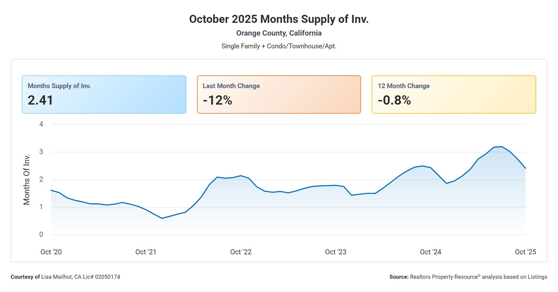 Orange County's housing market remains highly competitive, with only 2.41 months of available inventory. This limited supply creates challenges for buyers while presenting opportunities for sellers. Notably, inventory levels have decreased by 12% from the previous month, indicating a tightening market that increases competition and drives quicker decision-making.