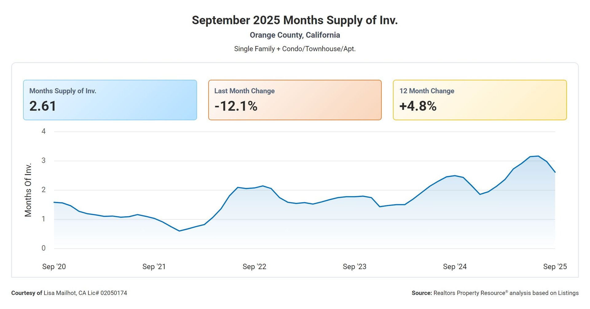 Orange County remains highly competitive, with a 2.61-month supply of inventory, indicating a slight seller’s market. Inventory levels have decreased by 12% compared to last month but are up 5% year-over-year, suggesting that while short-term supply is tight, long-term availability is improving.